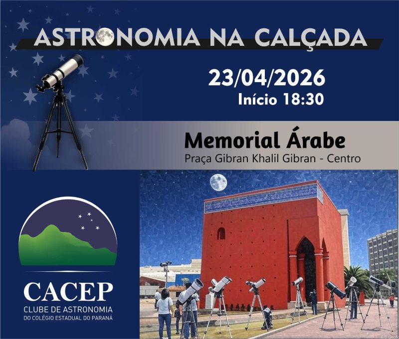 Mais informações…Neste ano também iremos realizar o evento Astronomia na Calçada nos meses de Abril, Agosto e Novembro, mas ainda estamos para confirmar as datas.